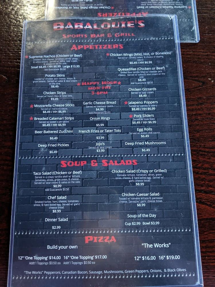 Babalouie’s menu offers a range of bar favorites. Enjoy juicy burgers like the Deluxe Cheeseburger and the unique Mushroom Burger. Sandwiches and wraps include classics like the Clubhouse and Philly Cheese Steak. For heartier options, the Fish & Chips and Country Fried Steak are must-tries. With around 50 items, the variety ensures there's something for every palate. Happy hour deals make options even more enticing!